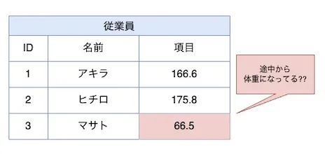 途中からvalueカラム(身長)が不要となり、「体重」が必要となったため、列の使い回ししたくなった…など