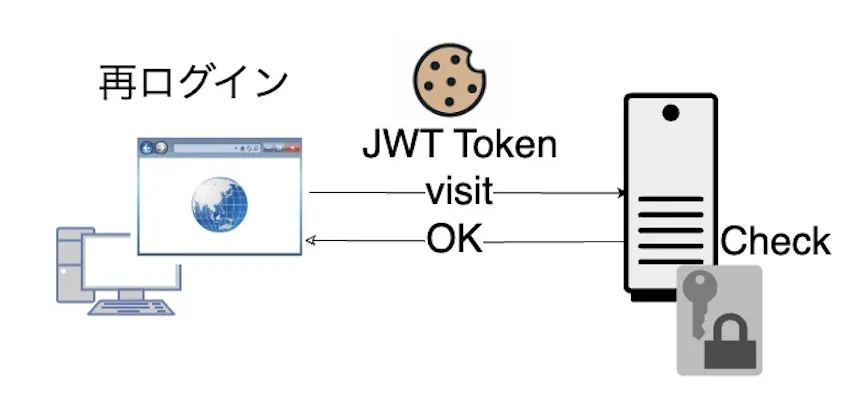 次にユーザーが再度訪問した際は、Cookieに格納されたJWTトークンが正常のものかを検証します。